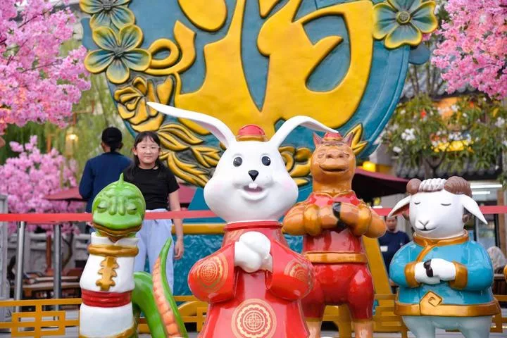 متحدہ عرب امارات، دبئی کی ایکسپو سٹی دبئی میں آمدہ چینی نئے  سال کی پریڈ میں فنکار اسٹیج پر پرفارم کررہے ہیں۔ (شِنہوا)