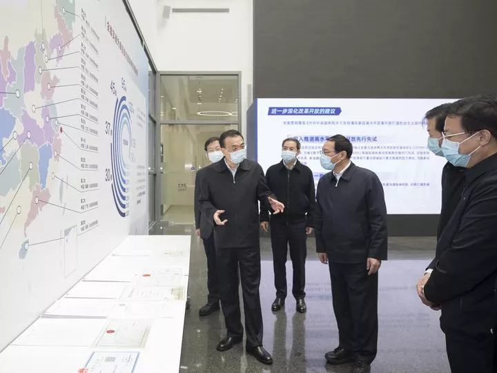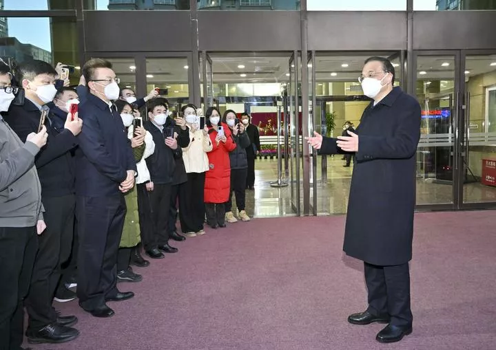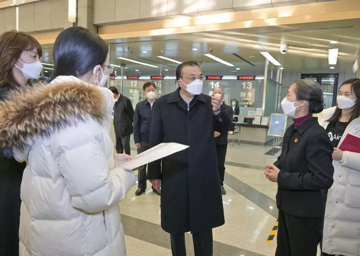 چین کے وزیراعظم لی کھ چھیانگ اسٹیٹ ایڈمنسٹریشن فار مارکیٹ ریگولیشن(ایس اے ایم آر) کے معائنہ کے دوران عملہ سے گفتگو کر رہے ہیں۔(شِنہوا)