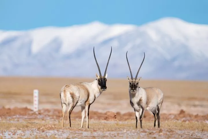 چین، شمال مغربی چھنگ ہائی کے علاقے ہو شیل میں تبتی نسل کے ہرن کو دیکھا جاسکتا ہے۔ (شِنہوا)