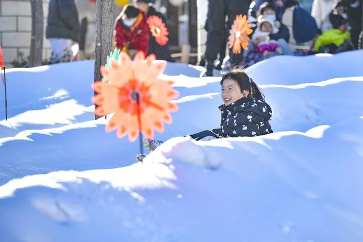 چین ، شمالی تیان جن کے ضلع جی ژو کے تھیم پارک میں بچے برف کی سرگرمیوں سے لطف اندوز ہورہے ہیں۔ (شِنہوا)