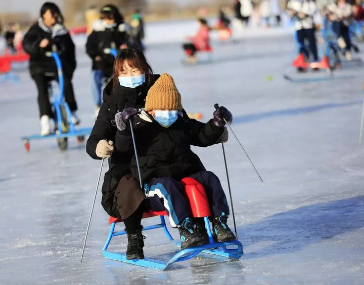 چین ، شمالی صوبہ ہیبے کے شہر تانگ شان میں تانگ شان ہائی گانگ اقتصادی ترقیاتی زون میں لوگ برف سے لطف اندوز ہورے ہیں۔ (شِنہوا)