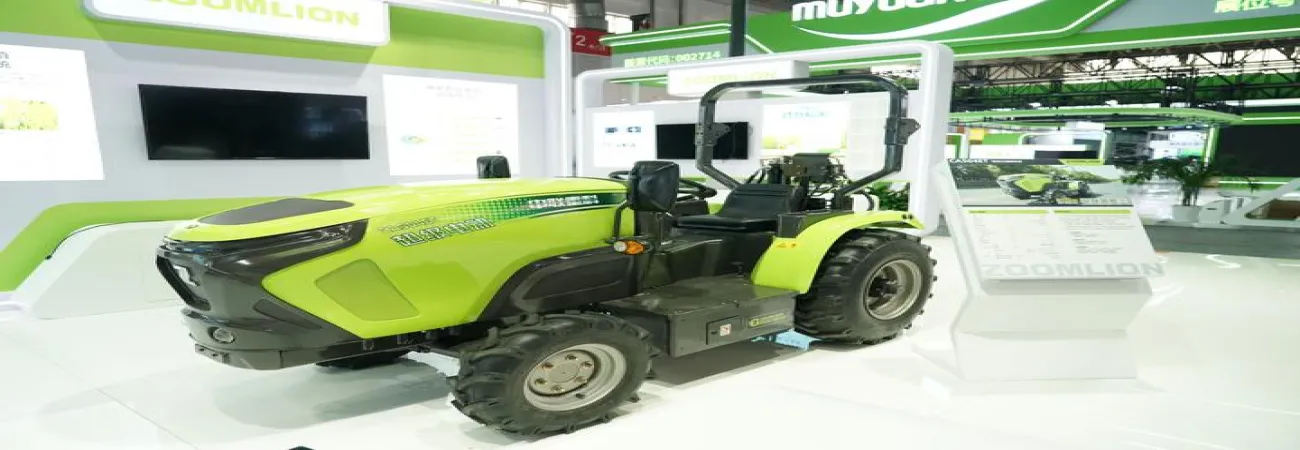 چین ، دارالحکومت بیجنگ میں چائنہ بین الاقوامی سپلائی چین نمائش میں ایک الیکٹرک ٹریکٹر کی نمائش کی جارہی ہے۔ (شِںہوا)