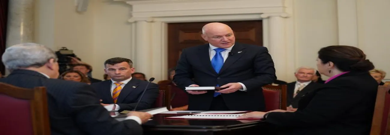کرسٹوفرلکسن ویلنگٹن میں گورنرجنرل سنڈی کیرو سے نیوزی لینڈ کے وزیراعظم کا حلف اٹھاتے ہوئے۔(شِنہوا)
