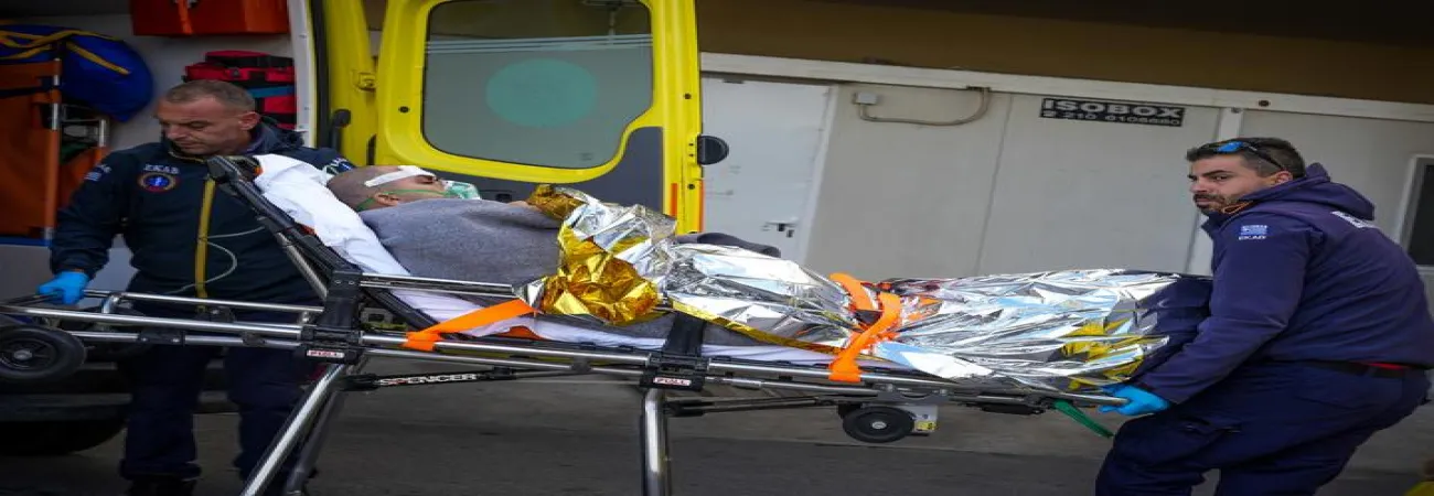 امدادی کارکن  یونان کے بحیرہ ایجین کے جزیرے لیسووس سے بچائے گئے ملاح کو ایمبولینس میں منتقل کر رہے ہیں۔(شِنہوا)