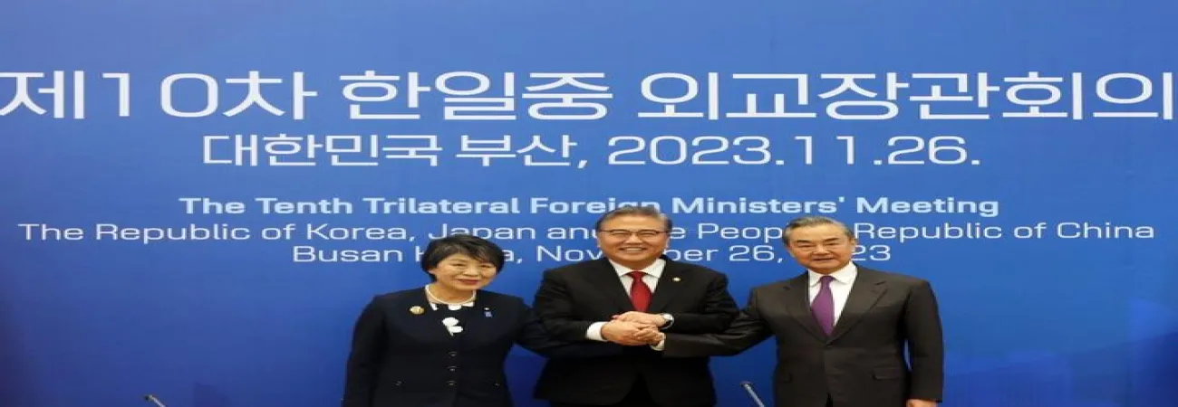 جنوبی کوریا ، بوسان میں چینی وزیر خارجہ وانگ یی نے جنوبی کوریا کے وزیر خارجہ پارک جن اور جاپانی وزیر خارجہ یوکو کامی کاوا کے ساتھ چین، جاپان اور جنوبی کوریا 10 ویں سہ فریقی وزرائے خارجہ اجلاس میں شرکت کی ۔ (شِنہوا)