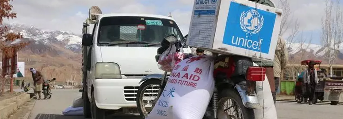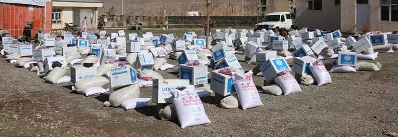 افغان صوبے بامیان میں مستحق خاندانوں کی مدد کے لیے چین اور یونیسیف کی جانب سے عطیہ کردہ امداد کو دیکھا جاسکتا ہے۔(شِنہوا)
