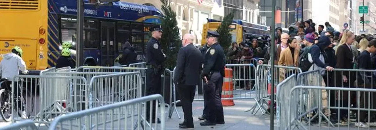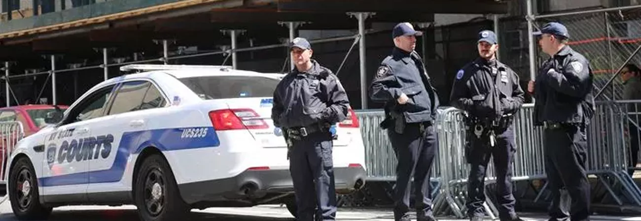 قانون نافذ کرنے والے اداروں کے اہلکار نیویارک میں مین ہیٹن کریمنل کورٹ اور مین ہٹن ڈسٹرکٹ اٹارنی آفس کے باہر تعینات ہیں، لوئر مین ہٹن کی عدالت میں سابق صدر ڈونالڈ ٹرمپ کی طے شدہ گرفتاری سے قبل حفاظتی اقدامات سخت کردئے گئے ہیں۔(شِنہوا)