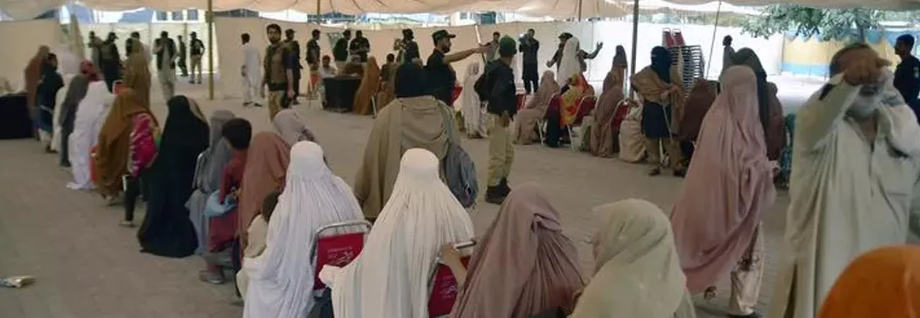 پشاور، ایک سرکاری مرکز میں لوگ مفت آٹا لینے کے لئے انتظار کررہے ہیں۔(شِنہوا)