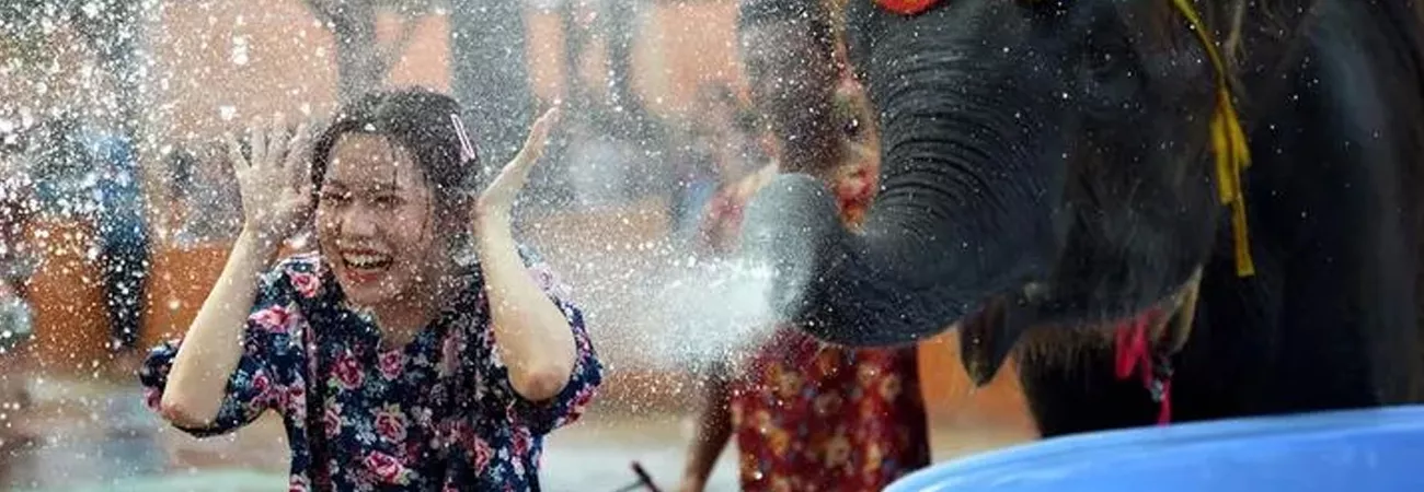 تھائی لینڈ ، ہاتھیوں کا سیاحوں پر پانی کا چھ...