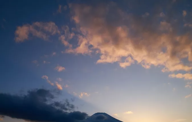 جاپان، یاماناشی پریفیکچر میں جھیل کاواگو چیکو سے لی گئی تصویر میں فُوجی پہاڑ کا دلکش نظارہ دیکھا جاسکتا ہے۔  (شِںہوا)