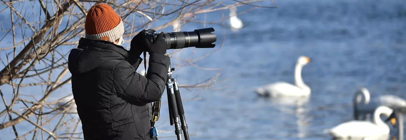 چین، شمال مشرقی صوبہ لیاؤننگ کے شہر بائی پیاؤ کے قصبے باجیازی کے گاؤں ہونگ کن میں ایک فوٹوگرافر ہنس کی تصاویر بنارہا ہے۔(شِںہوا)