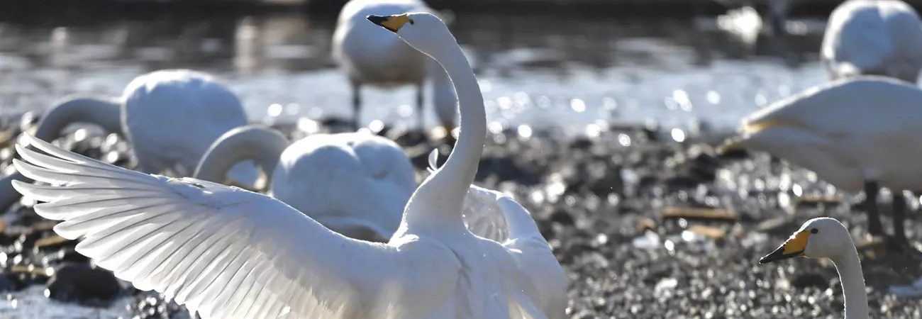 چین، شمال مشرقی صوبہ لیاؤننگ کے شہر بائی پیاؤ کے قصبے باجیازی کے گاؤں ہونگ کن میں ہنس دیکھے جاسکتے ہیں۔(شِںہوا)