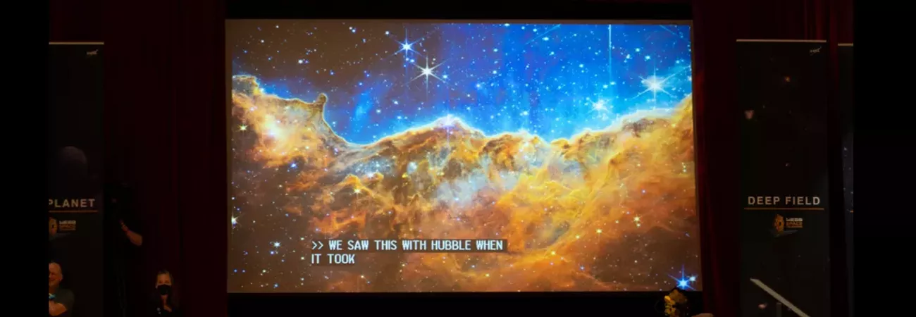 فائل فوٹو،ناسا کی جیمز ویب اسپیس ٹیلی سکوپ کے ذریعے کھینچی گئی تصویر جس میں کرینا نیبولا  میں ستاروں کے بننے کی جگہ  این جی سی 3324 کو دکھایا گیا ہے، امریکی ریاست میری لینڈ کے شہر گرین بیلٹ میں ناسا کے گوڈارڈ اسپیس فلائٹ سنٹر میں مشاہدہ کیا جارہا ہے۔(شِنہوا)