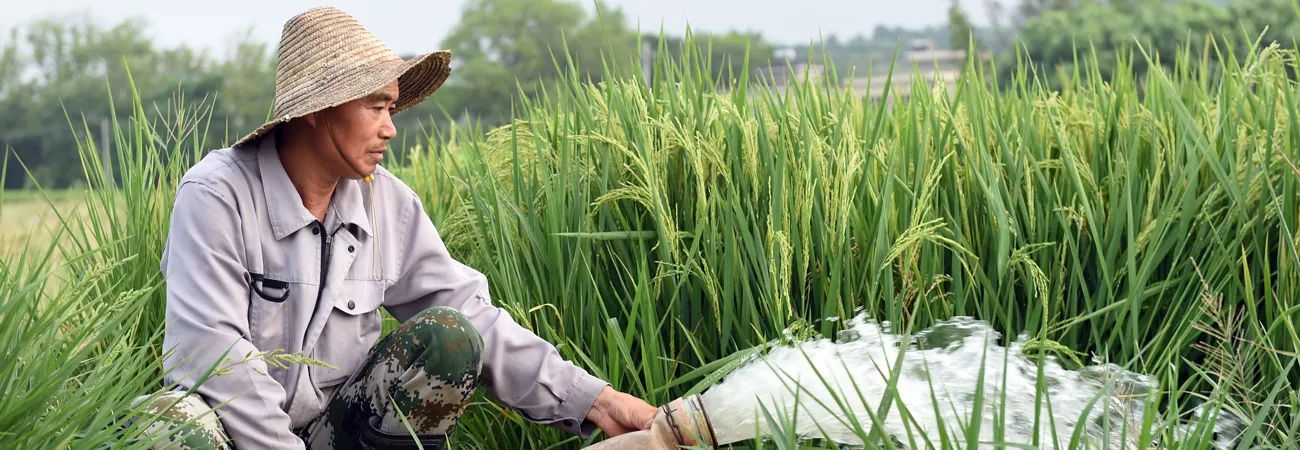 فائل فوٹو، چین، مشرقی صوبہ انہوئی کے شہر ووہو کے ضلع فان چھانگ کے قصبے شن گانگ میں ایک کسان کھیت کو پانی دے رہا ہے۔ (شِنہوا)