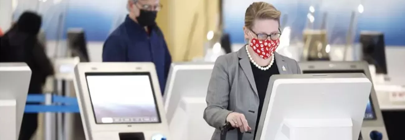 امریکہ ، ورجینیا کے شہر آرلِنگٹن کے رونالڈ ریگن واشنگٹن نیشنل ائیرپورٹ پر ماسک پہنے مسافروں کو دیکھا جاسکتا ہے۔(شِنہوا)