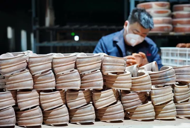 چین، شمالی صوبہ ہیبے کی کاؤنٹی سوننگ کی ایک ورکشاپ میں ایک محنت کش روایتی چینی آلہ موسیقی کے پرزے تیار کررہا ہے۔ (شِںہوا)