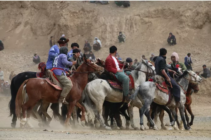 بامیان ، افغانستان (شِنہوا) صوبہ بامیان کے ریت کے میدانوں میں افغان گھڑ سواروں نے دوڑ لگا تے ہوئے ملک کے سب سے مقبول کھیل بزکشی کے دوران " بکری پکڑنے" کا مقابلہ کیا۔ اس کھیل کی تاریخ 600 سال پرانی ہے ۔ بزکشی ، پولو کا افغان ورژن ہے جو پورے وسط ایشیا میں کھیلا جاتا ہے۔ گھڑسوار حریف ٹیمیں بکری کی لاش پکڑنے اور اسے ہدف تک لے جانے اور اس دوران اسے مخالف سے بچانے کی کوشش کرتی ہیں۔