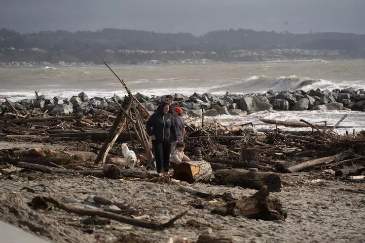 امریکہ ، کیلیفورنیا کے کیپیٹولا میں سرمائی طوفان کے بعد لوگ ساحل سمندر پر کھڑے ہیں۔(شِنہوا)