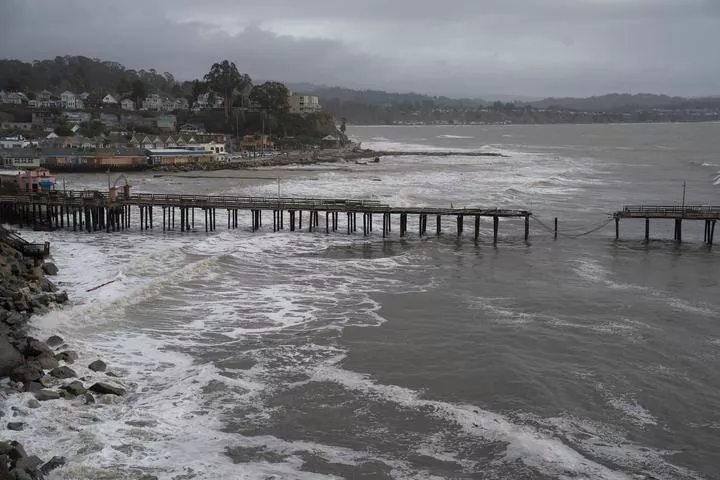 امریکہ ، کیلیفورنیا کے کیپیٹولا میں سرمائی طوفان کے بعد تباہ شدہ گھاٹ کا ایک منظر۔(شِنہوا)