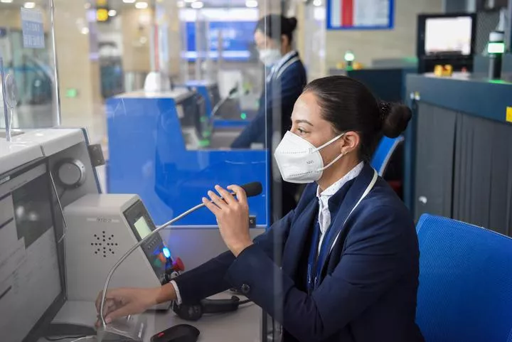 چین ، دارالحکومت بیجنگ کے ضلع ہائی تیان کے ایک ویکسی نیشن مرکز میں طبی عملہ کی ایک رکن سانس کے ذریعے نوول کرونا وائرس ویکسین استعمال کرنے والے ایک شخص سے بات چیت کررہی ہے۔ (شِنہوا)
