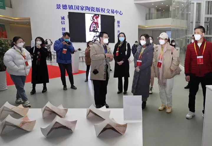 چین، مشرقی صوبہ جیانگ شی کے شہر جینگ ڈی ژن میں 5 ویں عرب فنون میلے  میں مہمان سیرامک  کے تخلیقی ڈیزائن دیکھ رہے ہیں۔ (شِنہوا)