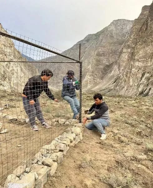 چین۔ پاکستان مشترکہ تحقیقی مرکز برائے زمینی سائنس میں پوسٹ ڈاکٹریٹ کے طالب علم نذیراحمد بازئی (دائیں سے پہلے) 2 ہزار 550 میٹر کی بلندی پر واقع شیشپر گلیشیئر پر موسمیاتی اسٹیشن نصب کررہے ہیں۔ (شِنہوا)