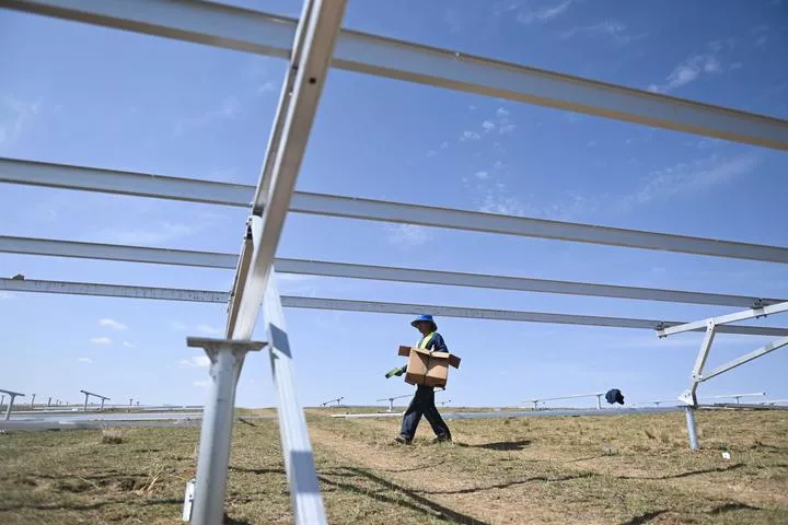 چین، شمال مغربی ننگ شیا ہوئی خوداختیار خظے میں باؤ فینگ فارمنگ لائٹ انٹی گریٹڈ پاور اسٹیشن کا ایک منظر۔ (شِنہوا)