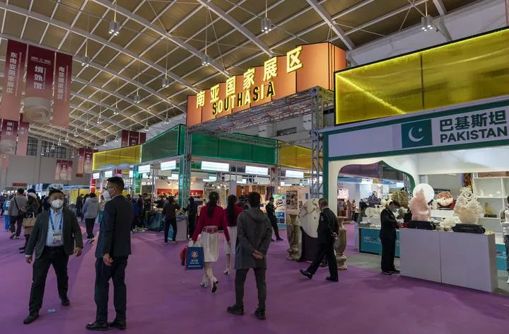 چین ، جنوب مغربی صوبہ یون نان کے شہر کن منگ میں منعقدہ چھٹی چین ۔ جنوبی ایشیا نمائش کا ایک منظر ۔ (شِنہوا)
