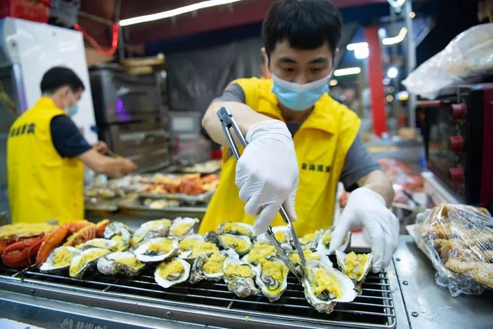 چمکتے پانی پر سنہری شفق کا چھڑکاؤ جھیل پر تیرتی ہوئی کشتیوں اور شخصیات کو منعکس کرتا ہے اور دور ساحل پر لوگ دلکش قدرتی مناظر کے نشے میں مست تصاویر بناتے ہیں۔