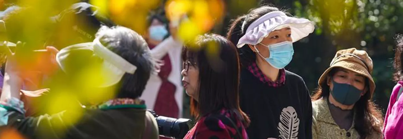 چین ، دارالحکومت بیجنگ کے بے ہائی پارک میں لوگ خزاں کے دلکش نظارے سے لطف اندوز ہورہے ہیں ۔ (شِنہوا)