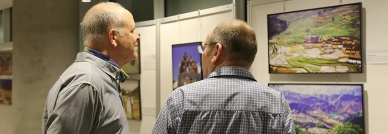 یہ نمائش جس کو ایک ہی آسمان کے نیچے کا عنوان دیا گیا ہے ٹوکیو کے چائنہ کلچرل سینٹر میں شروع ہوئی اور اس میں فینگ شوۓمن، گو یون اور جیانگ تنگ کی تصاویر شامل ہیں۔