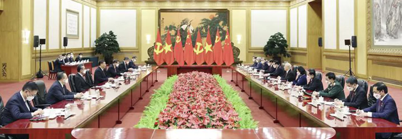 چین ، دارالحکومت بیجنگ کے عظیم عوامی ہال میں چین کے صدر اور کمیونسٹ پارٹی آف چائنہ کی مرکزی کمیٹی کے جنرل سیکرٹری شی جن پھنگ ، کمیونسٹ پارٹی آف ویتنام کی مرکزی کمیٹی کے جنرل سیکرٹری نکویان پھو تورنگ سے بات چیت کررہے ہیں۔ (شِنہوا)