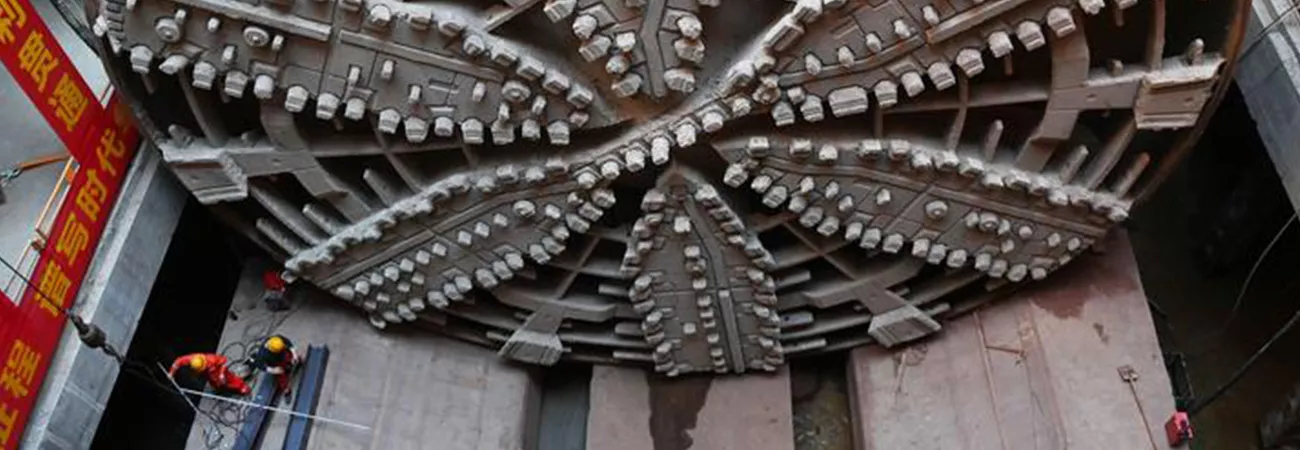 چین، مشرقی صوبہ ژے جیانگ کے  ہانگ ژو کے ضلع فویانگ میں چھن وانگ سرنگ منصوبہ کی تعمیراتی جگہ پر شیلڈ ٹنلنگ مشین فوچھون کو دیکھا جاسکتا ہے ۔(شِنہوا)