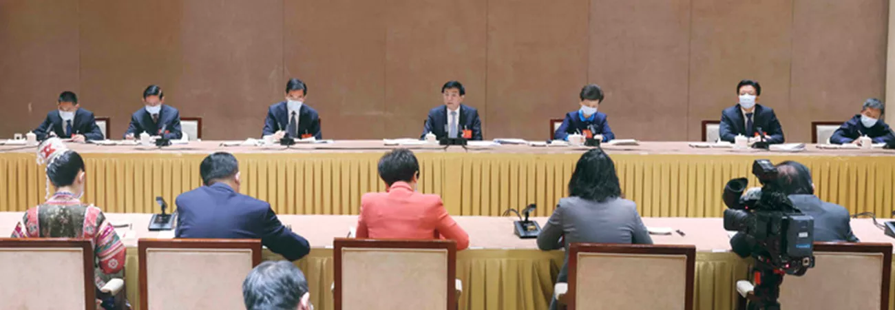 وانگ نے چین کے جنوب مغربی صوبہ گوئی ژو سے تعلق رکھنے والے ساتھی مندوبین کے ساتھ گروپ مباحثہ میں شرکت کی۔