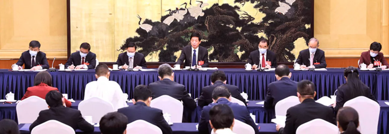 ژاؤ لی جی بیجنگ میں منعقدہ کمیونسٹ پارٹی آف چائنہ کی 20 قومی کانگریس میں شرکت کرنے والے چین کے اندرون منگولیا خوداختیار خطے کے مندوبین کے ساتھ گروپ مباحثے میں شریک ہیں۔ (شِنہوا)