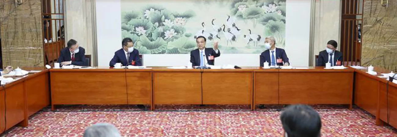 لی کھ چھیانگ بیجنگ میں منعقدہ کمیونسٹ پارٹی آف چائنہ کی 20 قومی کانگریس میں شرکت کرنے والے چین کے شمال مغربی صوبہ گانسو کے مندوبین کے ساتھ گروپ مباحثے میں شریک ہیں۔ (شِنہوا)