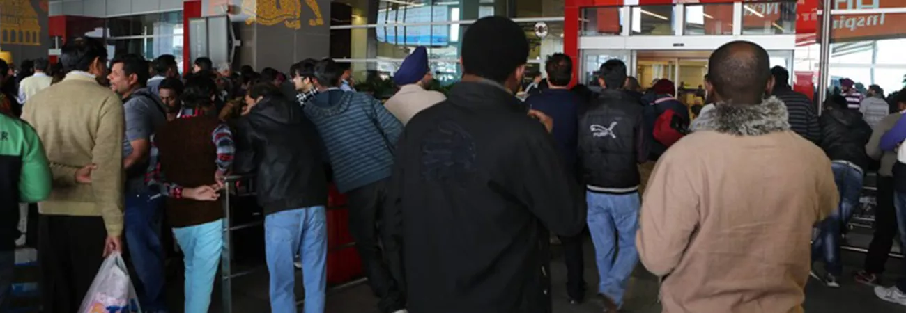 قطر کے دوحہ میں مرکزی ٹکٹنگ سنٹر میں لوگ فیفا ورلڈ کپ کے حوالے سے کی گئی سجاوٹ کے سامنے سے گزر رہے ہیں۔(شِنہوا)