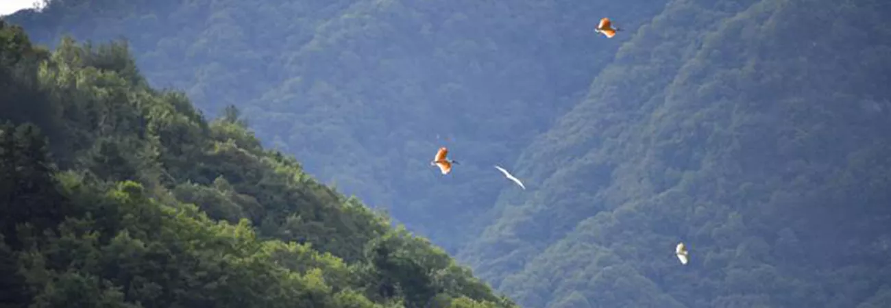 چین کے شمال مغربی صوبہ شانشی کی کاؤنٹی ننگ شان کے گاؤں ژائی گو پر کلغی دار پر ندے پرواز کررہے ہیں۔ (شِںہوا)