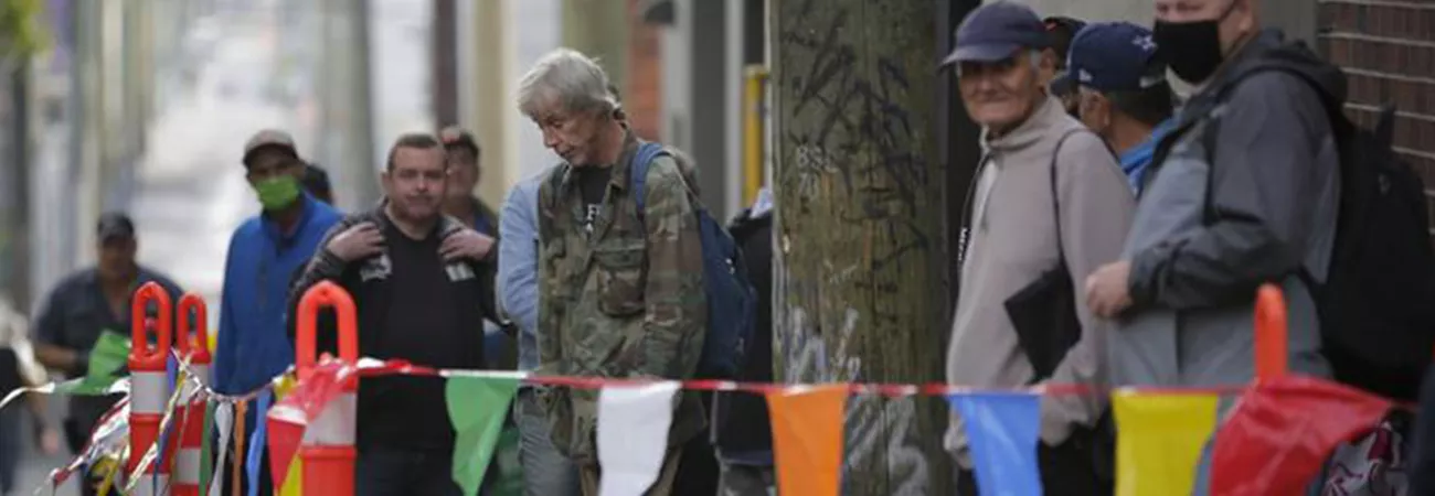 کینیڈا  ، برٹش کولمبیا کے وینکوور میں رضاکار یوم تشکر پر مفت کھانا لینے کیلئے قطار میں لگے ہوئے ہیں۔(شِنہوا)