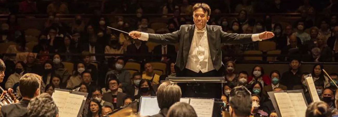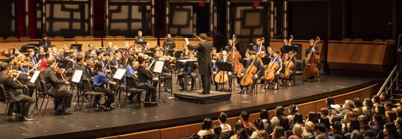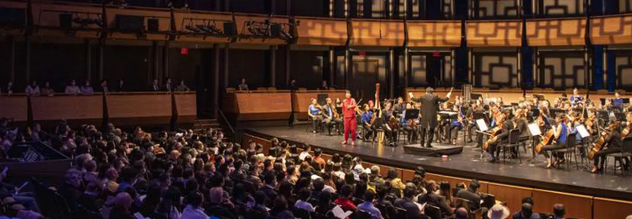 امریکہ، نیویارک کے لنکن سینٹر میں منعقدہ چائنہ ناؤ میوزک فیسٹول  ٹیلز آف  بیجنگ  پر امریکہ ۔ چین میوزک انسٹی ٹیوٹ کے ڈائریکٹر جن ڈونگ کائی (درمیان) کانسرٹ میں ہدایات دے رہے ہیں۔ (شِںہوا)