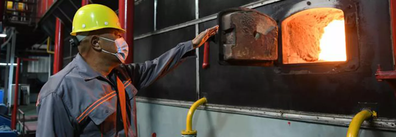 چین کے شمالی اندرون منگولیا خوداختیار خطے کے ہوہوٹ کی ہیٹنگ کمپنی میں عملہ کا ایک رکن بوائلر کو جانچ رہا ہے۔ (شِںہوا)
