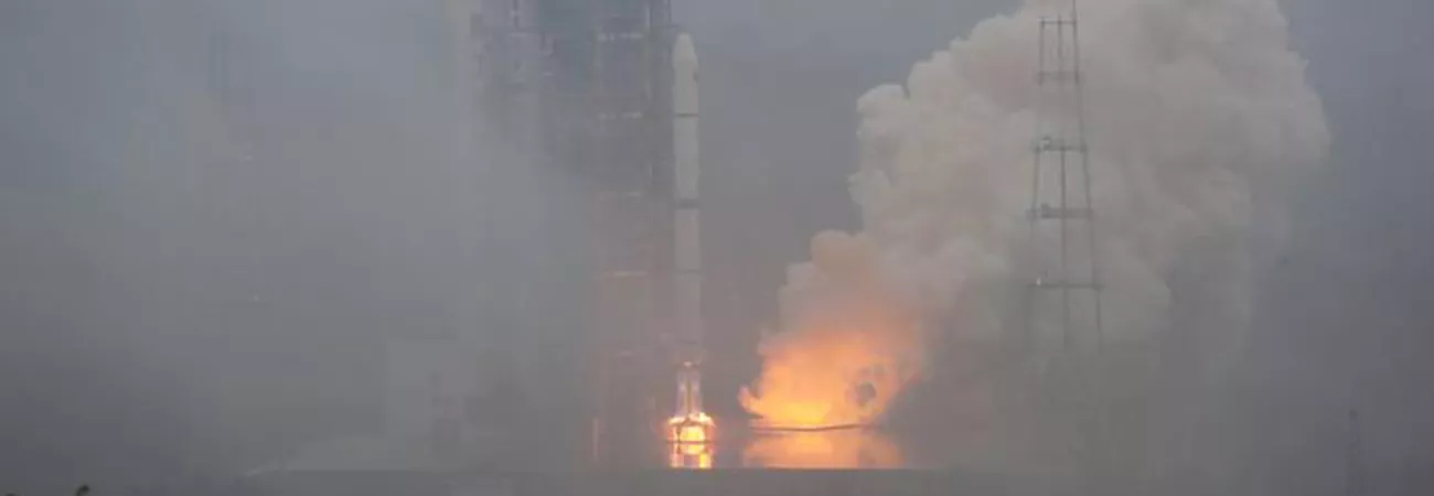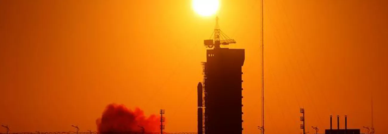 چین کے شمال مغرب میں واقع جیو چھوان سیٹلائٹ لانچ مرکز سے ایک لانگ مارچ 2 ڈی کیریئر راکٹ جدید خلائی شمسی رصدگاہ لیکر جارہا ہے۔ (شِںہوا)