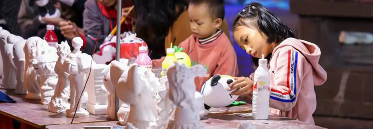 چین کے جنوب مغربی صوبہ گوئی ژو کے شہر ٹونگ رن کی یوپھنگ ڈونگ خوداختیار کاؤنٹی کے ایک پارک میں لوگ پلا سٹر کے مجسموں کو رنگ کررہے ہیں۔ (شِنہوا)