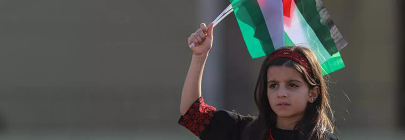 غزہ شہر میں ایک فلسطینی بچی تحریک جہاد اسلامی فلسطین کے قیام کی 35 ویں سالگرہ کے موقع پر منعقدہ ریلی میں شریک ہے۔(شِنہوا)