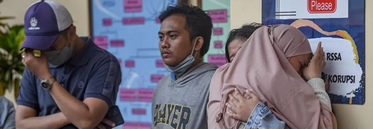 انڈونیشیا ، مشرقی جاوا کے مالانگ میں فٹبال میچ میں بھگڈر مچنے سے متاثرہ شہری کے رشتہ دارغم سے نڈھال ہیں۔(شِنہوا)