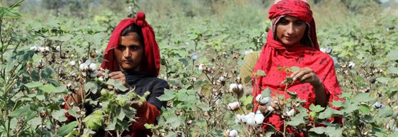 ملتان میں خواتین کاشتکار کپاس کے کھیت میں کپاس چن رہی ہیں۔ (شِنہوا)