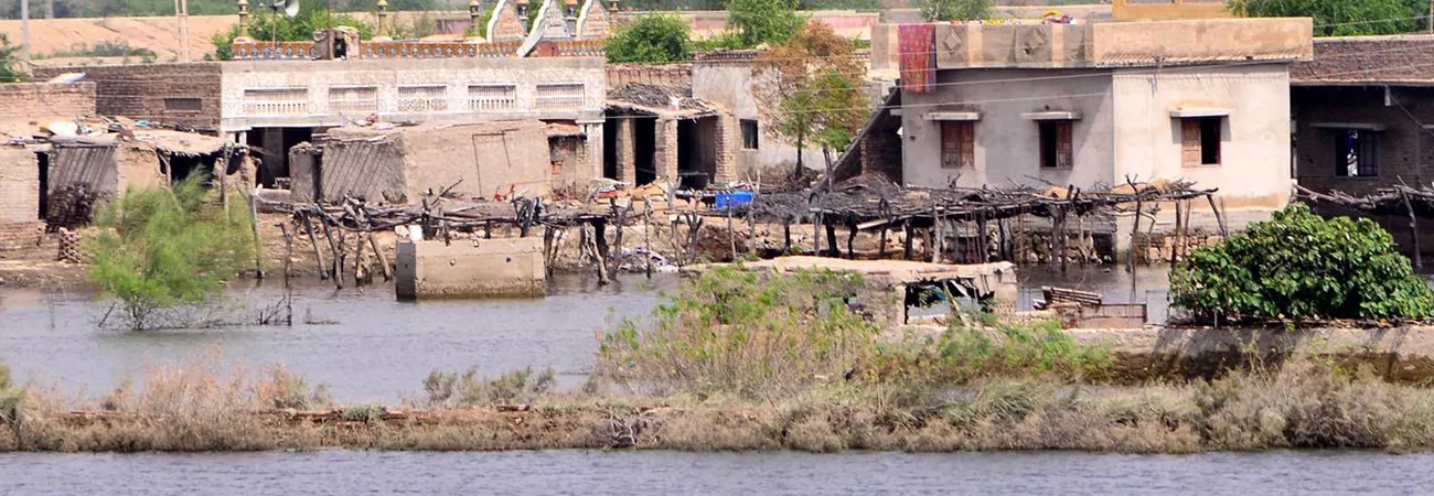 ضلع جام شورو میں سیلاب سے متاثرہ ایک علاقے کو دیکھا جاسکتا ہے۔ (شِنہوا)