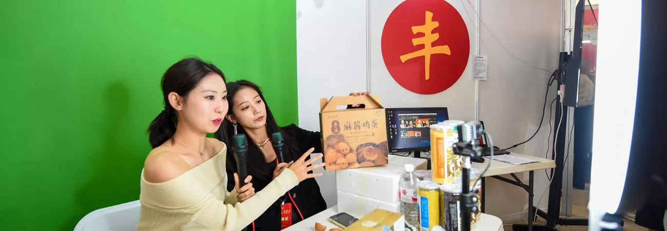 چین کے اندرون منگولیا خوداختیار خطے کے شہر ہوہوٹ میں آمدہ چینی کسانوں کے کٹائی میلے کے جشن کے دوران 2 خواتین لائیو اسٹریمنگ سے زرعی مصنوعات کی تشہیر کررہی ہیں۔ (شِںہوا)