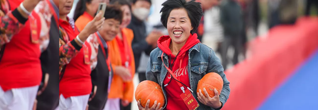 چین کے اندرون منگولیا خوداختیار خطے کے شہر ہوہوٹ میں آمدہ چینی کسانوں کے کٹائی میلے کے جشن کے دوران ایک خاتون کھیل میں شریک ہیں۔ (شِںہوا)