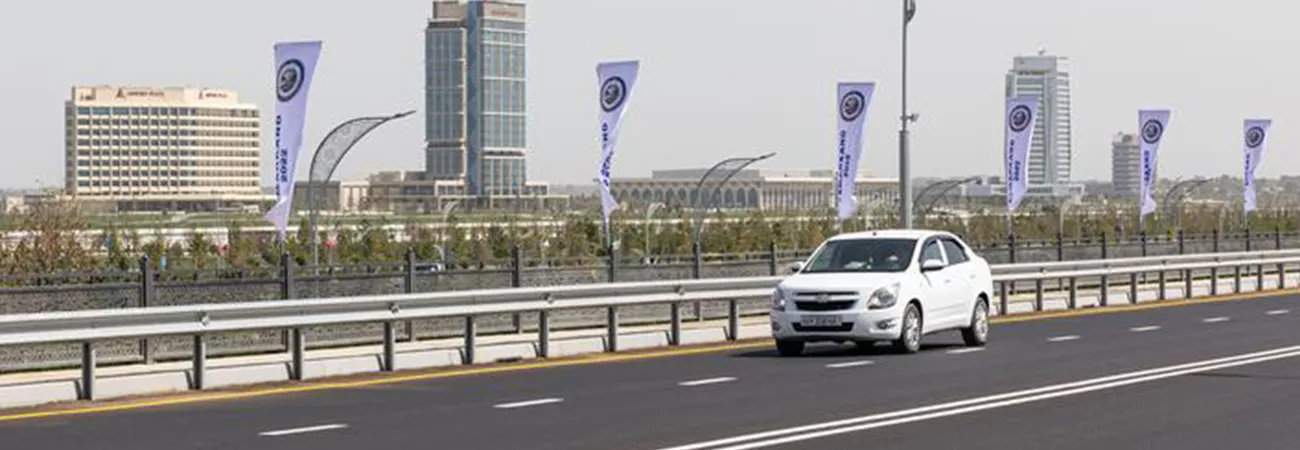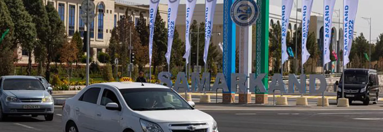 ازبکستان، ثمرقند میں ایک گاڑی سڑک سے گزررہی ہے۔ (شِنہوا)